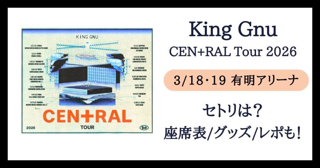 【KingGnu】セントラルツアー2026有明アリーナセトリは?グッズ/座席表/レポ