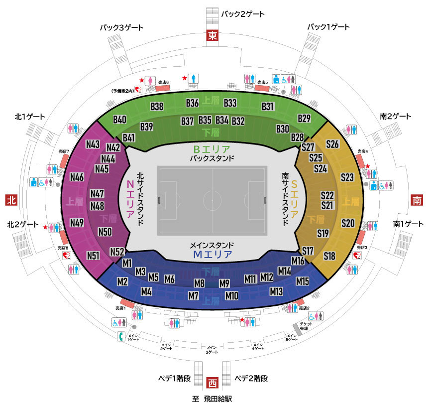 こちらは、味の素スタジアムの座席表です。