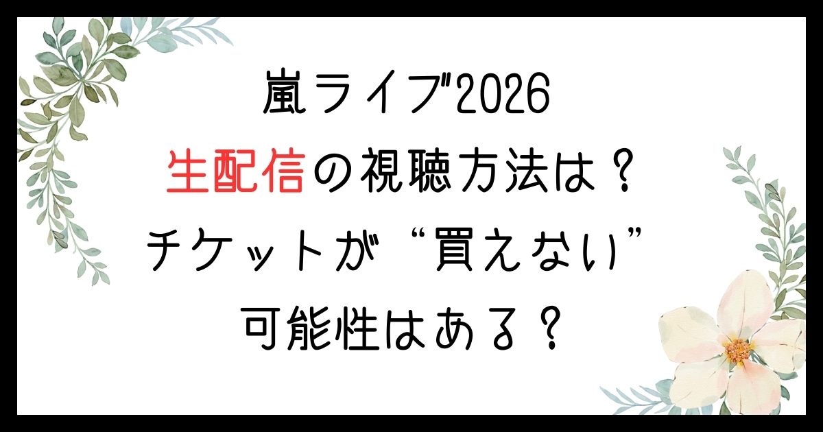 嵐のライブツアー2026「ARASHI LIVE TOUR 2026 『We are ARASHI』」での生配信でのチケットの入手方法や購入から視聴までの手順など視聴方法、生配信のチケットが買えない可能性もあるのかについて解説していきました。