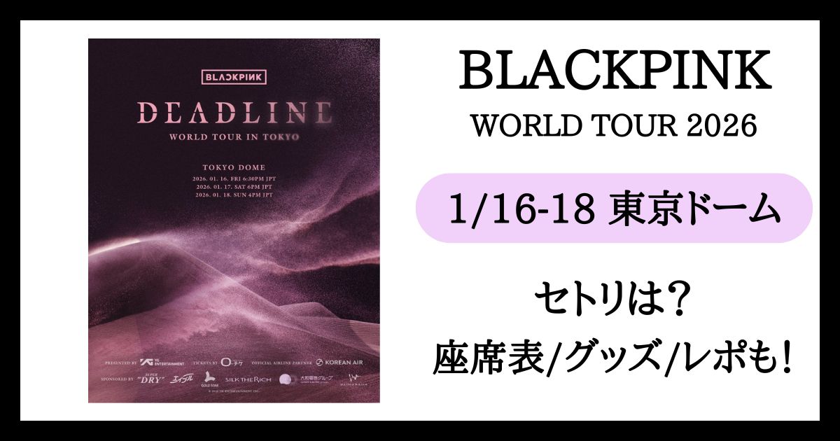 こちらの記事では、BLACKPINKワールドツアー2026「WORLD TOUR <DEADLINE> IN TOKYO」2026年1月16日〜18日に東京ドームでの曲名や曲順などのセットリスト、ステージ構成などの座席表、物販やグッズ販売情報、感想レポを調査していきました。