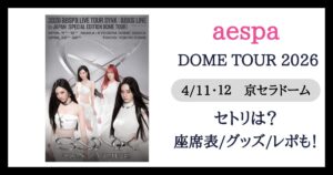 BTSのワールドツアー「BTS WORLD TOUR ‘ARIRANG’ IN JAPAN」2026年4月17日・18日に東京ドーム公演での曲名や曲順などのセトリ、ステージ構成などの座席表、物販やグッズ売り切れ情報、終演時間などの感想レポを調査しご紹介していきます。