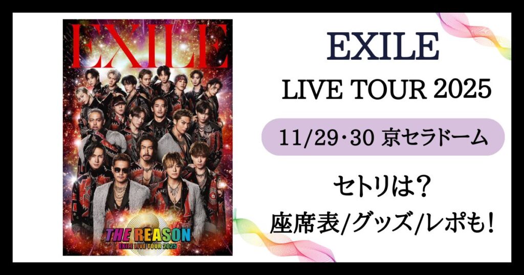 EXILEライブ2025“THE REASON”京セラセトリは?座席表/グッズ/レポ