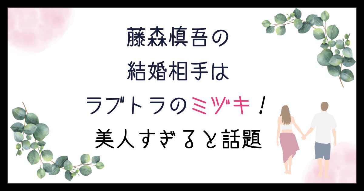 オリラジ藤森慎吾の結婚相手はラブトラのミヅキ?