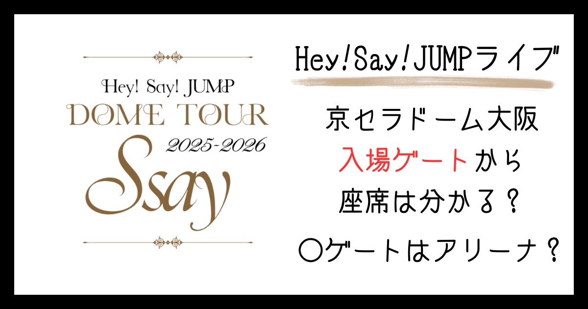2026年1月10日〜12日に開催されるHey!Say!JUMPのドームライブ「Hey! Say! JUMP DOME TOUR 2025-2026 S say」の京セラドーム大阪での、入場ゲートと座席についてご紹介していきました。