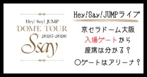 Hey!Say!JUMPドームツアー「Hey! Say! JUMP DOME TOUR 2025-2026 S say」の、2026年1月10日〜12日に京セラドーム大阪公演での、曲名や曲順などのセトリ、ステージ構成やトロッコや立ち位置などの座席表、物販やグッズ情報、感想レポをご紹介していきました。