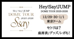 Hey!Say!JUMPのドームライブ「Hey! Say! JUMP DOME TOUR 2025-2026 S say」での着席ブロックの座席はどこか、また座席からの見え方について調査してご紹介していきました。