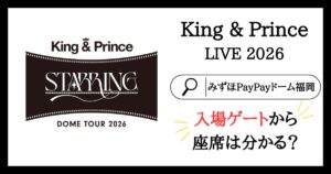 King & Princeライブ2026「King & Prince DOME TOUR 2026 STARRING」2026年1月17日・18日みずほPayPayドーム福岡公演でのステージ構成や座席表、トロッコ、立ち位置などを調査していきます。