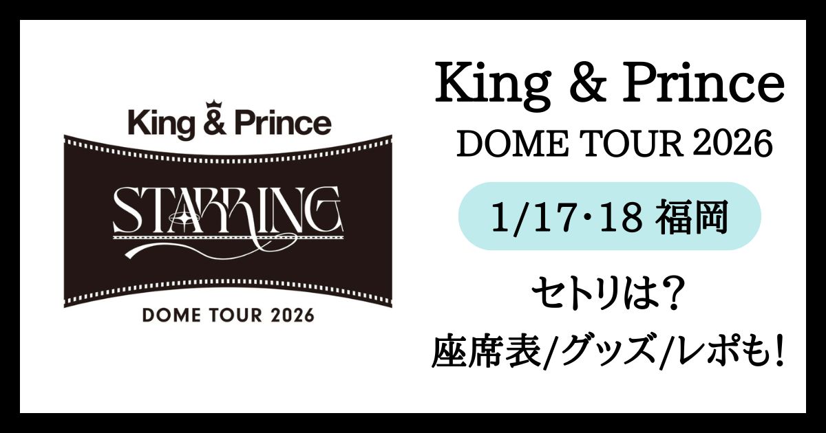 今回こちらの記事では「King & Prince DOME TOUR 2026 STARRING」初回公演である2026年1月17日・18日にみずほPayPayドーム福岡での、キンプリの曲名や曲順などのセトリ、ステージ構成やトロッコなどの座席表、物販やグッズ情報、トーク内容など感想レポを調査していきました。