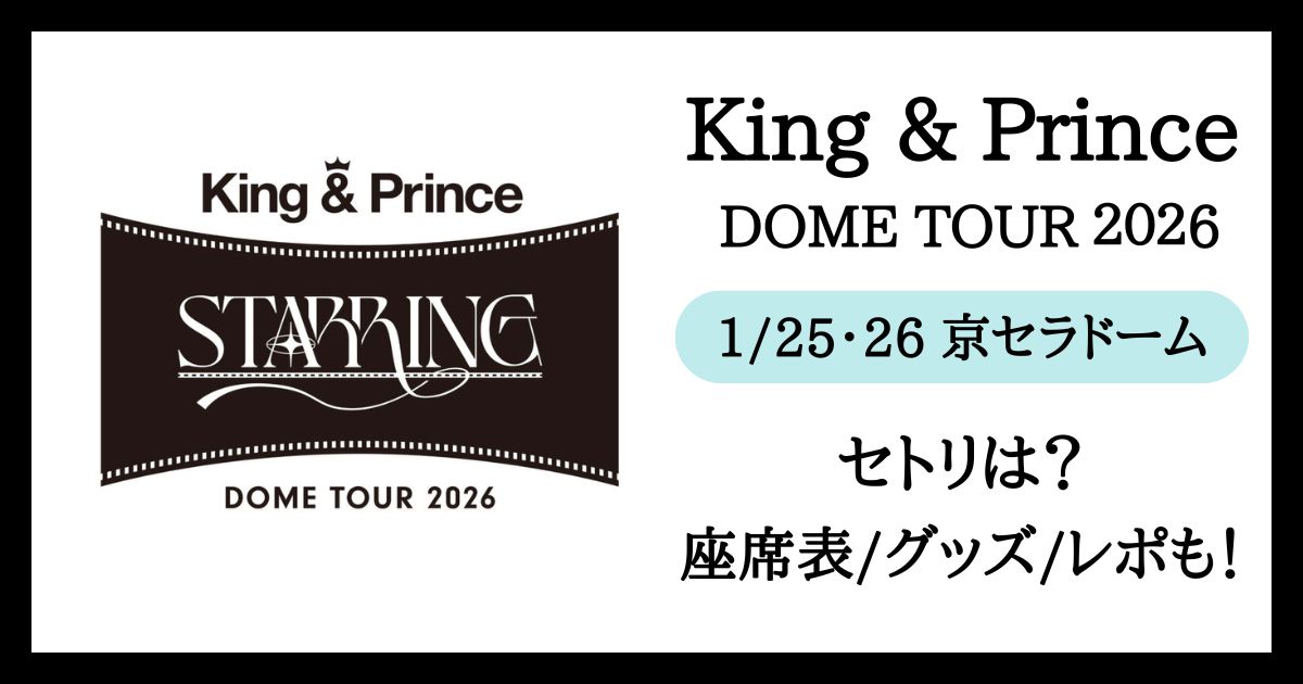 King & Princeライブ2026「King & Prince DOME TOUR 2026 STARRING」2026年1月25日・26日京セラドーム大阪公演でのステージ構成や座席表、トロッコ、立ち位置などを調査していきます。