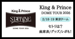 「King & Prince DOME TOUR 2026 STARRING」の東京ドーム公演のセトリやグッズ、レポ情報は下記記事でまとめていますので、参考にしてみてくださいね。