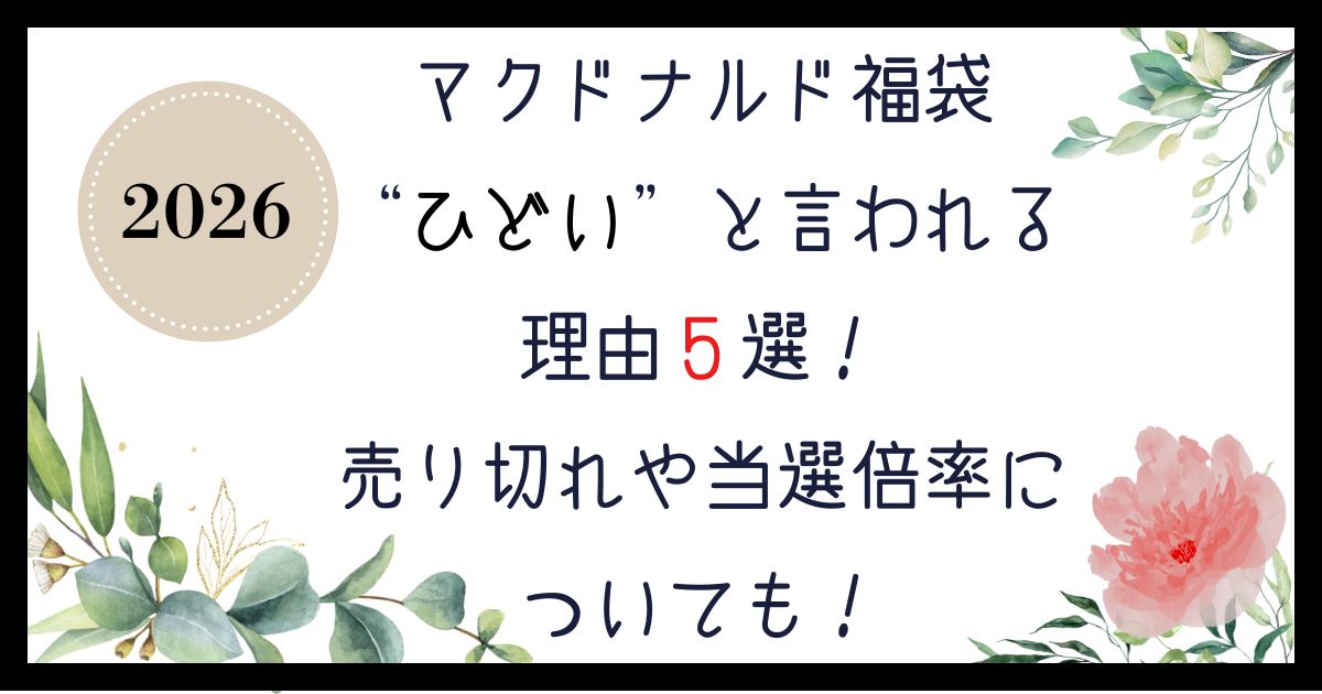 この記事では、マクドナルドの福袋がひどいと言われる理由について、売れ残りはあるのか、マクドナルドの福袋2026の当選確率について調査しまとめていますので購入する際の参考になればと思います。