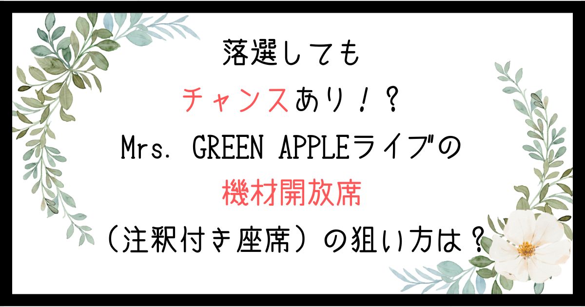 先行販売や一般販売が全部外れたけれど、この機材開放席でミセスのライブに行くことができた!と大逆転する方もいますので、機材開放席のチャンスは掴みにいきたいところです。