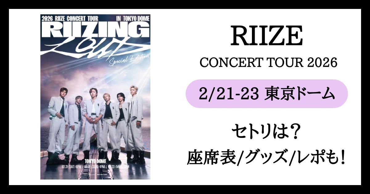 今回は、「2026 RIIZE CONCERT TOUR [RIIZING LOUD] Special Edition in TOKYO DOME」2026年2月21日〜23日の東京ドーム公演での、曲名や曲順などのセットリスト、ステージ構成などの座席表、物販やグッズの売り切れ情報、感想レポや終演時間など、ライブで気になる情報をまとめてご紹介していきます。