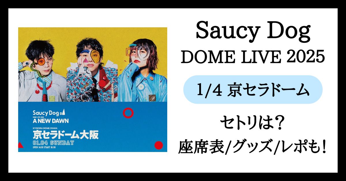 今回この記事では、Saucy Dogのドームライブ2026「Saucy Dog DOME LIVE 2026 A NEW DAWN」2026年1月4日京セラドーム大阪での曲名や曲順などのセットリスト、物販やグッズ販売売り切れ情報、ステージ構成などの座席表、感想レポを調査していきます。