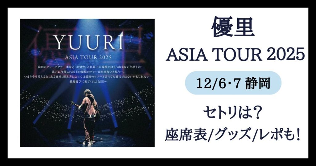 【優里アジアツアー2025】静岡公演のセトリは?座席表/グッズ/レポも!