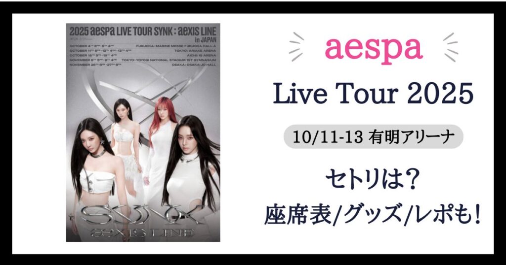 【aespa】ライブツアー2025有明アリーナのセトリは?グッズや座席表・レポも!