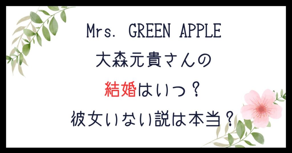ミセス大森元貴の結婚はいつ?彼女いない説は本当なのか真相を徹底調査!