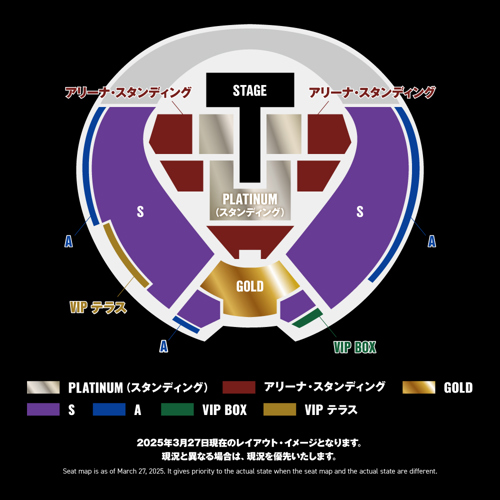 PLATINUMスタンディング席ですとグッズ付きとなっていることから、Tシャツやフーディー、アクセサリーなどが販売される予想です。