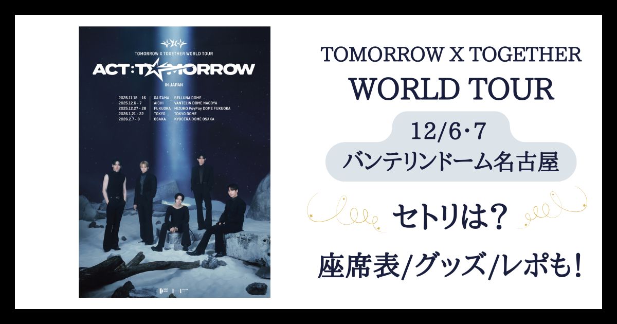 TXTワールドツアー日本『TOMORROW X TOGETHER WORLD TOUR <ACT : TOMORROW> IN JAPAN』2025年12月6日・7日バンテリンドームナゴヤの愛知公演での、曲名や曲順などのセトリを調査していきます。