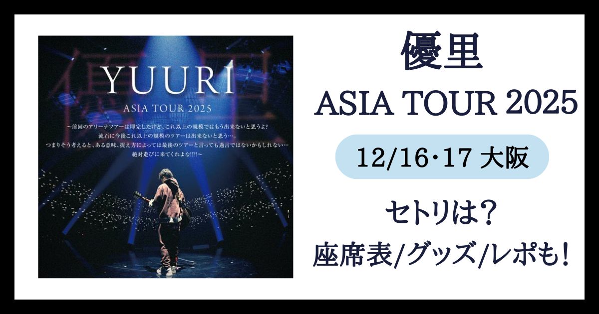 優里さんのアジアツアー2025である「YUURI ASIA TOUR 2025」の12月16日・17日に大阪城ホールで開催される大阪公演での、曲名や曲順などのセットリストを調査していきます。